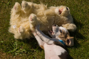 På lignende måde er det vist, at hunde kan styrke følelser som f.eks.